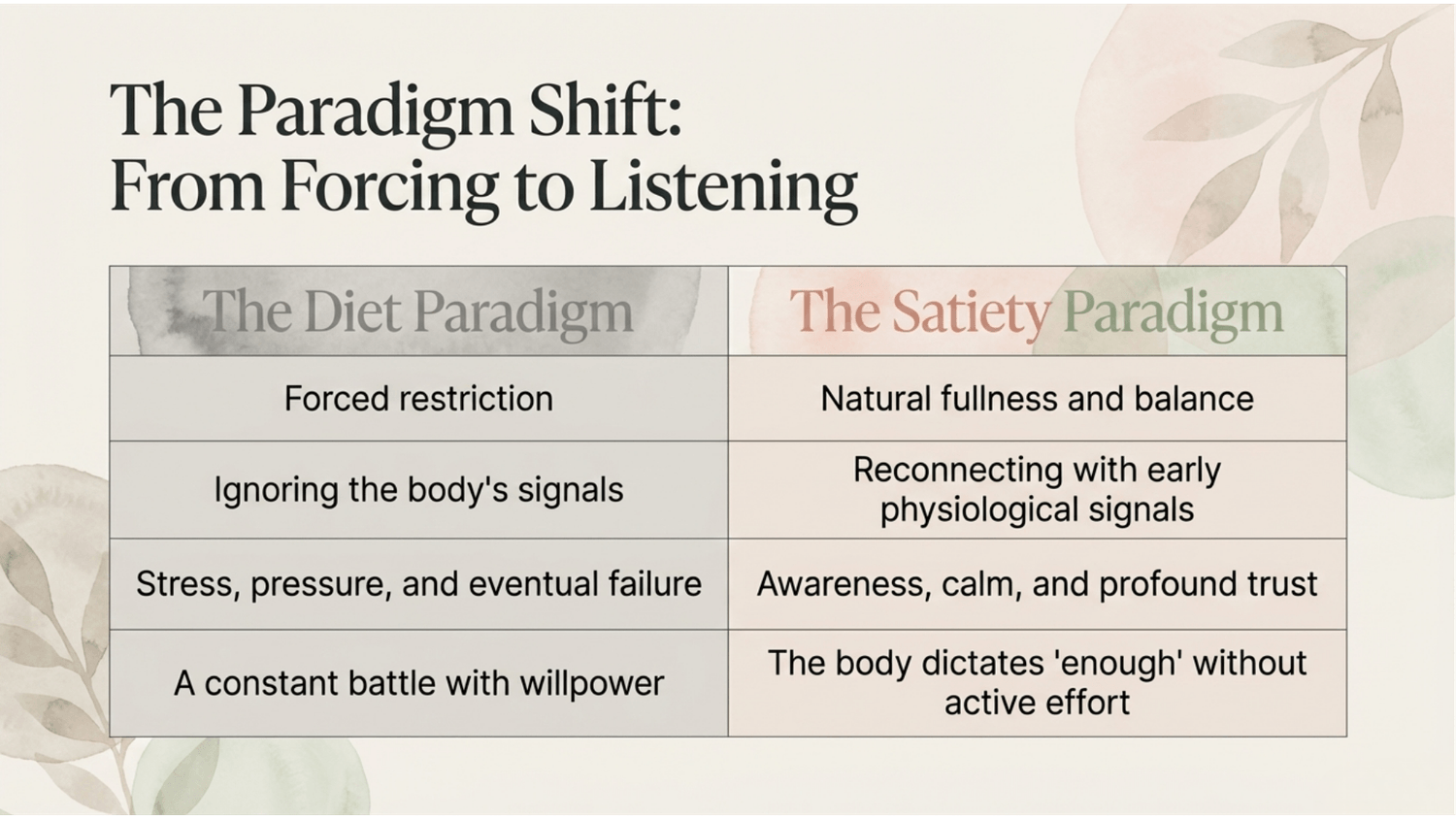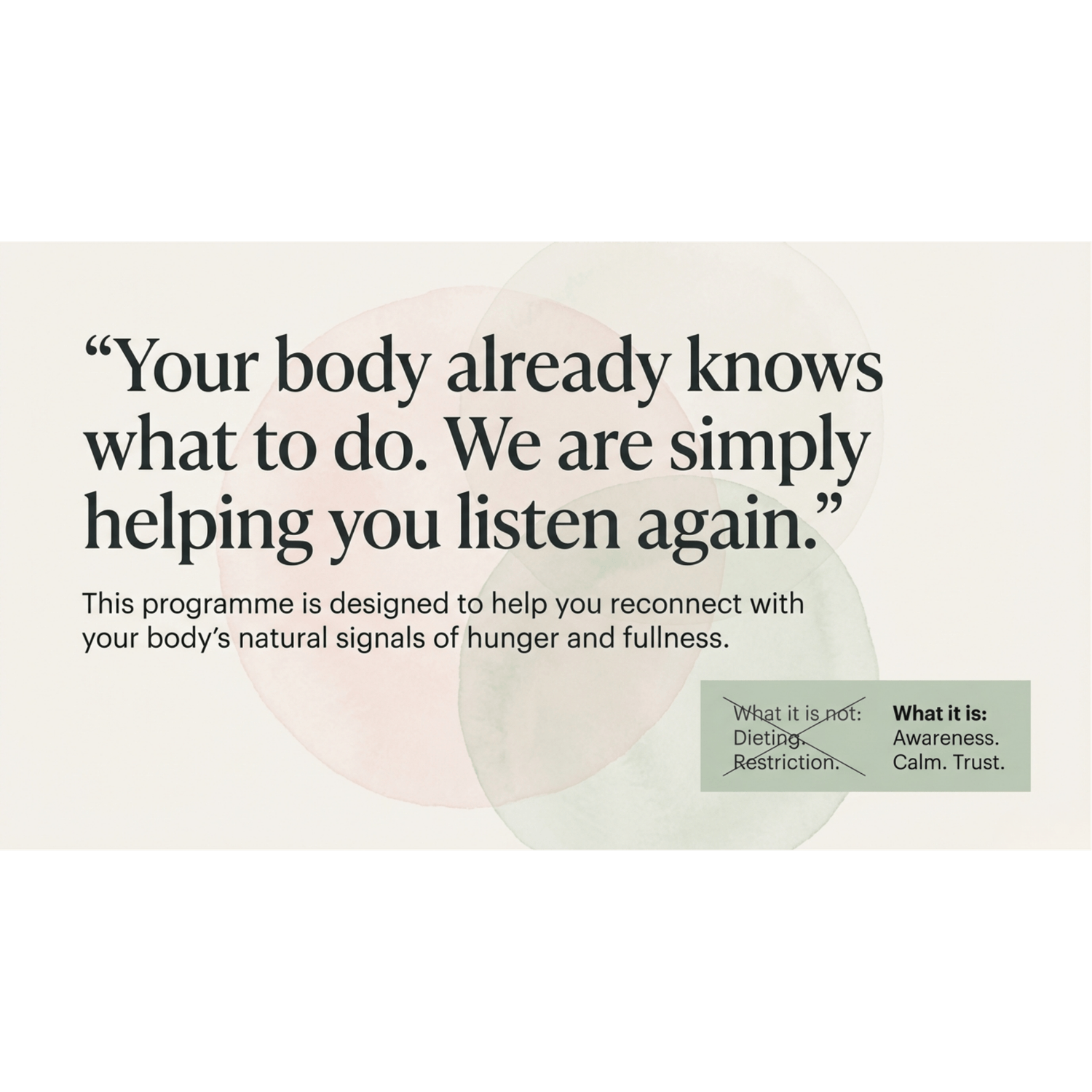 The focus is restoring your body’s signals and your relationship with food.